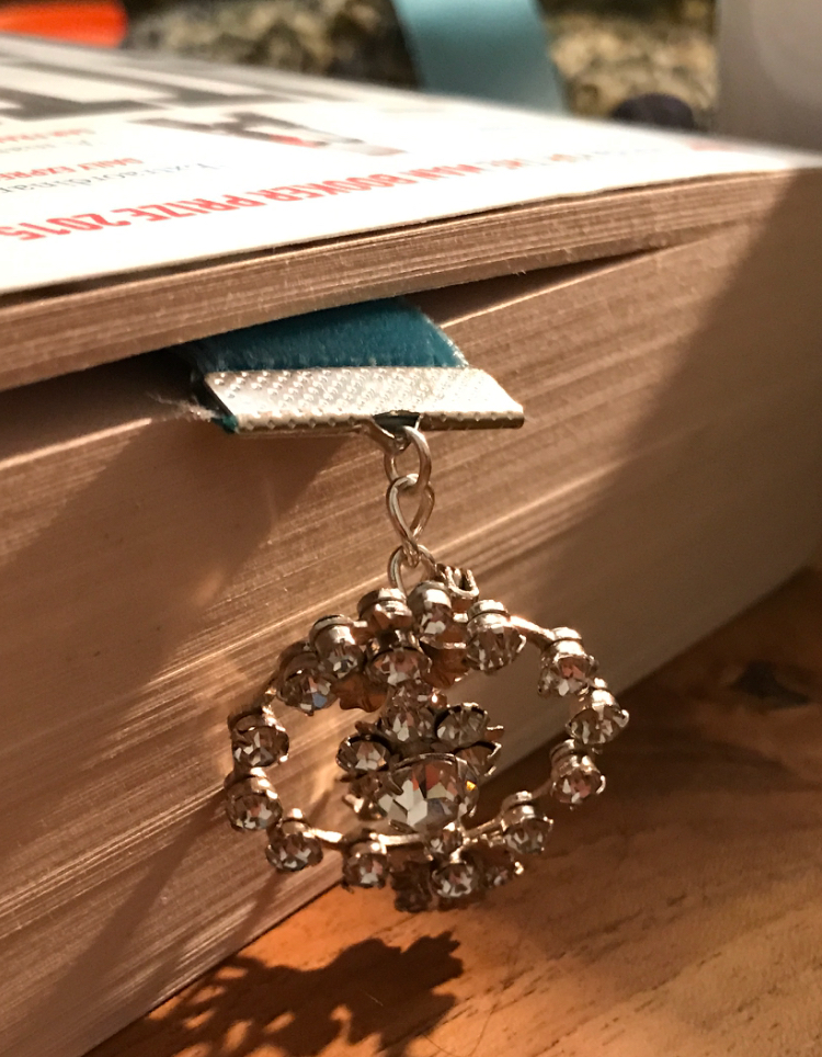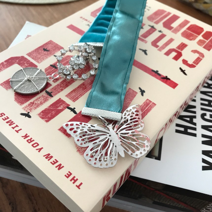 Gorgeous velvet and satin with vintage diamanté brooch and silver butterflies.