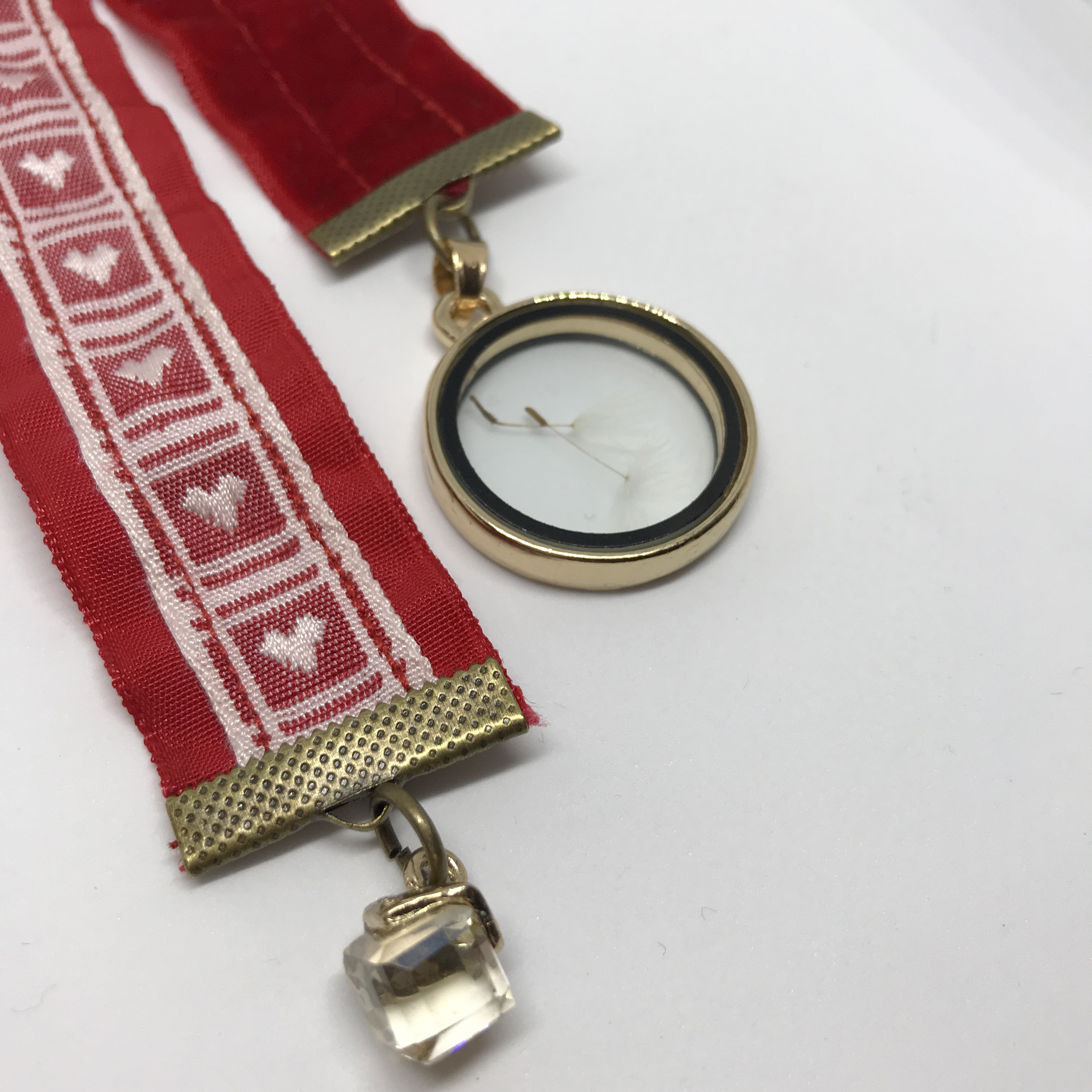 Pretty heart ribbon with dandelion pendant and amber gem.