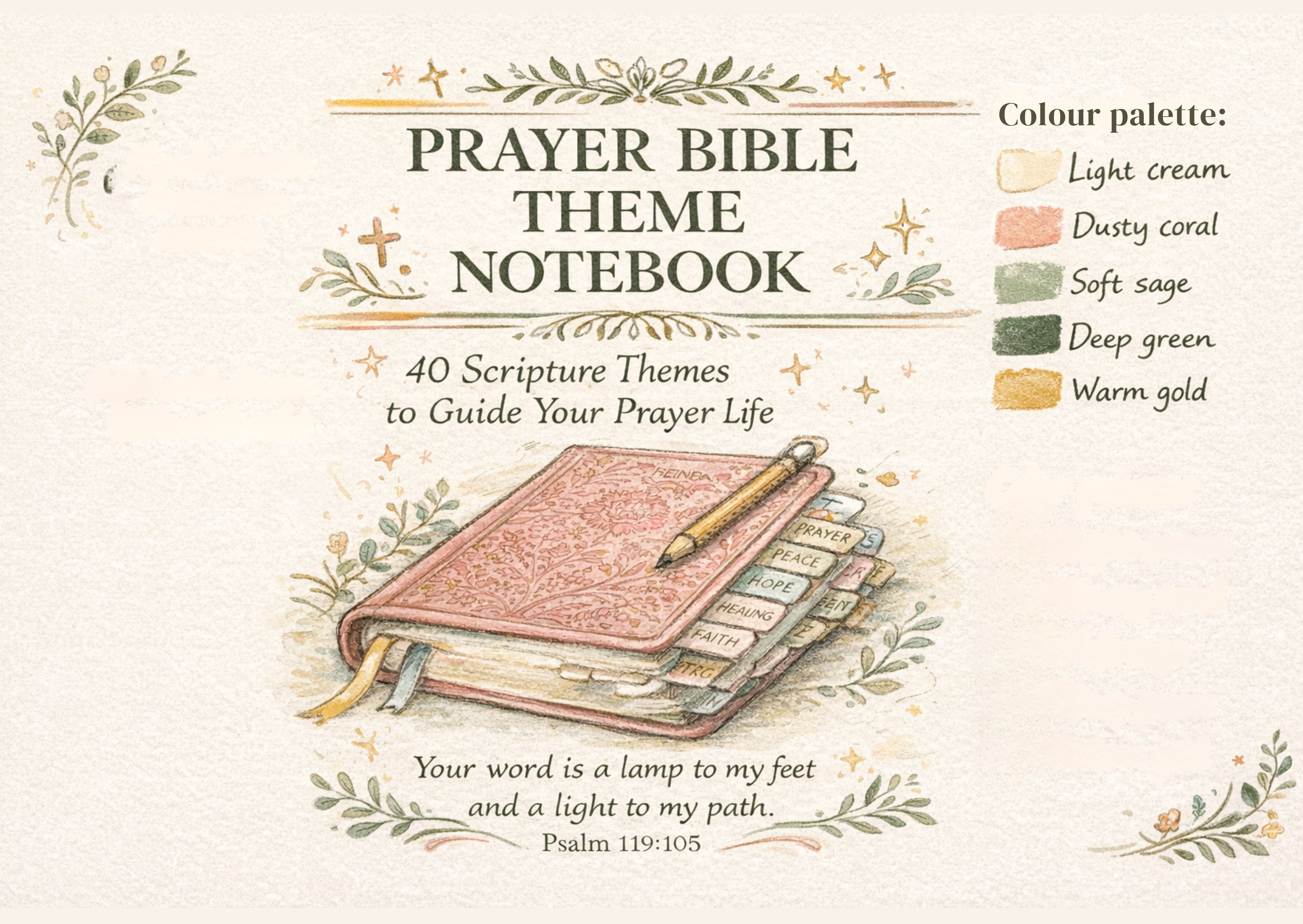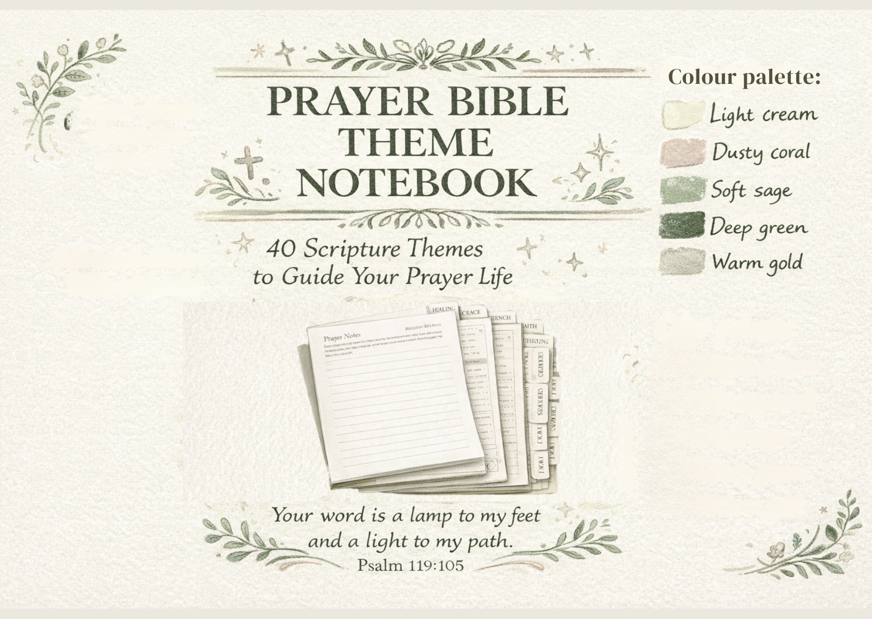 May this notebook help guide your prayers, strengthen your faith and bring you closer to God; one theme, one verse, one prayer at a time.