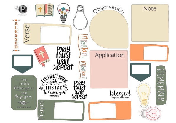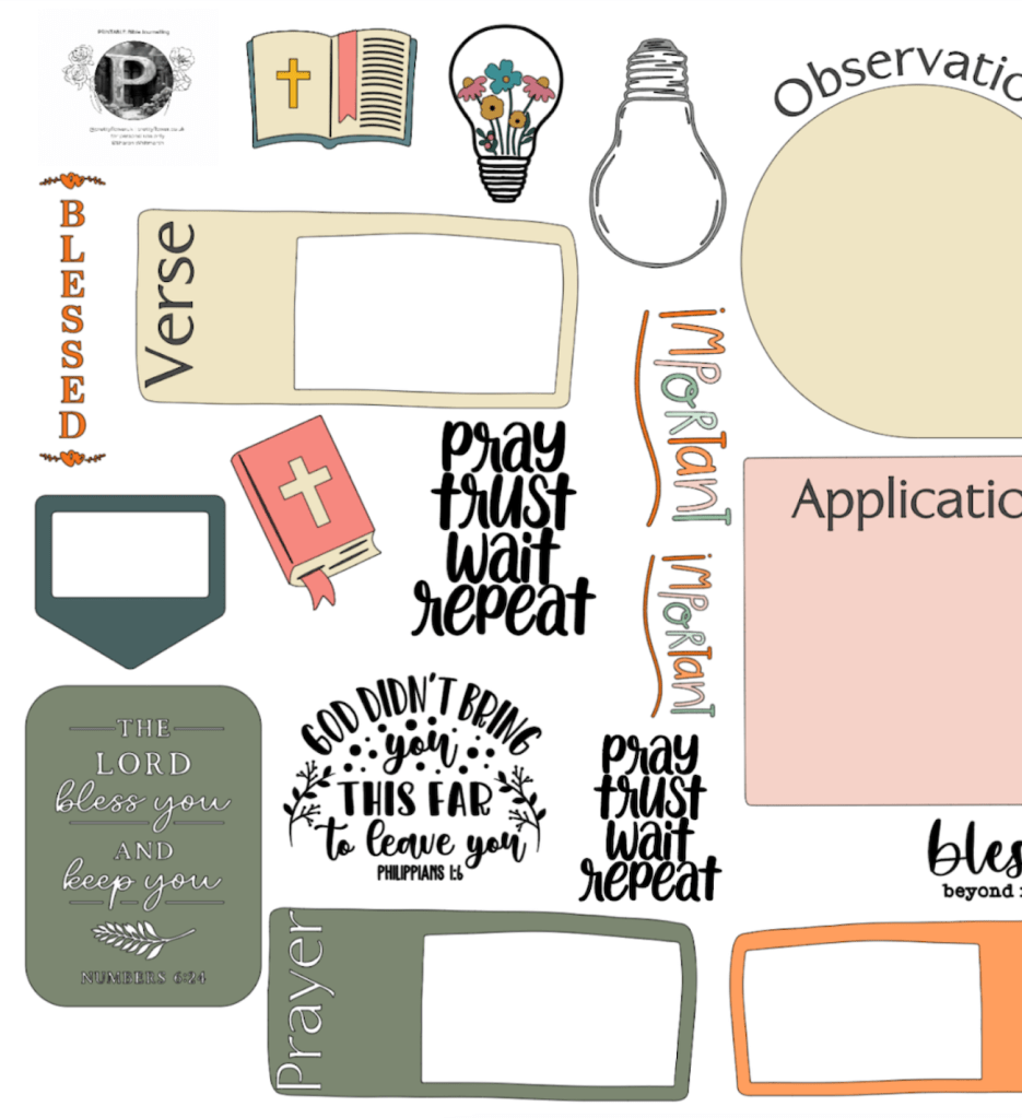 I’ve struggled to find stickers and reflective resources for my own bible journalling – so I’ve taken to making my own! Because of this you’ll see designs that follow a theme or verse.