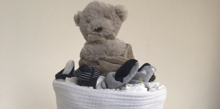 A nappy cake with around 70 nappies to get mum started off with! This Teddy also come with four pairs of socks, a blanket and two muslins. AND pretty ‘Nappy Pins’ for mum. Useful links: Shop for baby gifts on Amazon