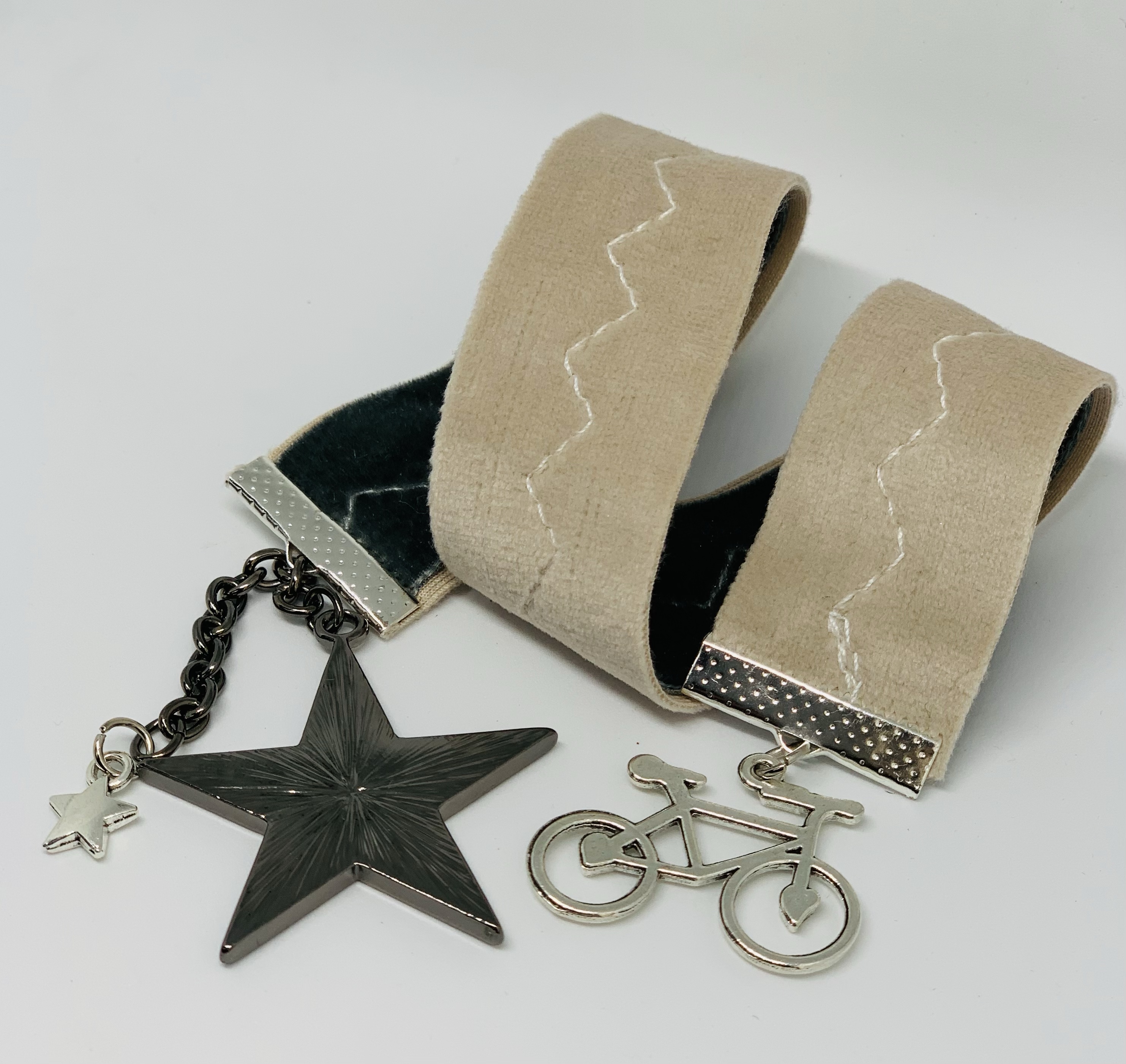 Pink suede, with a gorgeous blue elastic bind to stop my Bible falling open and getting damaged in my bag. I’ve sewn beading and pearls, a pretty butterfly. And adorned it with a pearl and marcasite brooch.